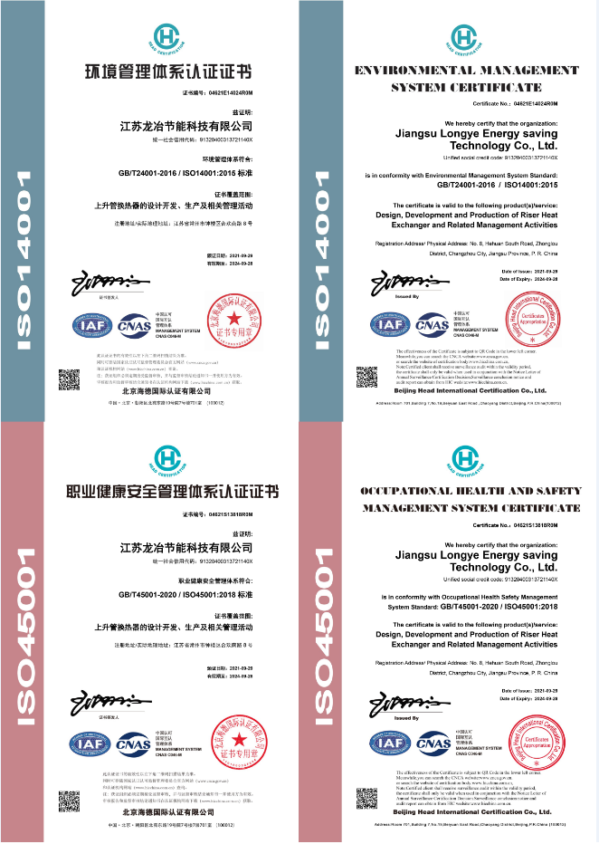 2021年9月,北京海德国际认证有限公司三位专家组成的审核专家组,对我公司上升管换热器的设计开发、生产及相关管理活动依据GB/T24001、GB/T45001两项标准要求建立的ISO14001环境管理体系、ISO45001职业健康安全管理体系的符合性、充分性和有效性,进行了为期三天的全过程审核与指导。审核专家组根据体系审核要求,逐一了解我司体系的建立与运行情况后,现场进行全部门、全产品、全过程、全覆盖的符合性审核,对公司两项体系运行过程中存在的问题和需持续改进方面提出了宝贵的意见和建议。